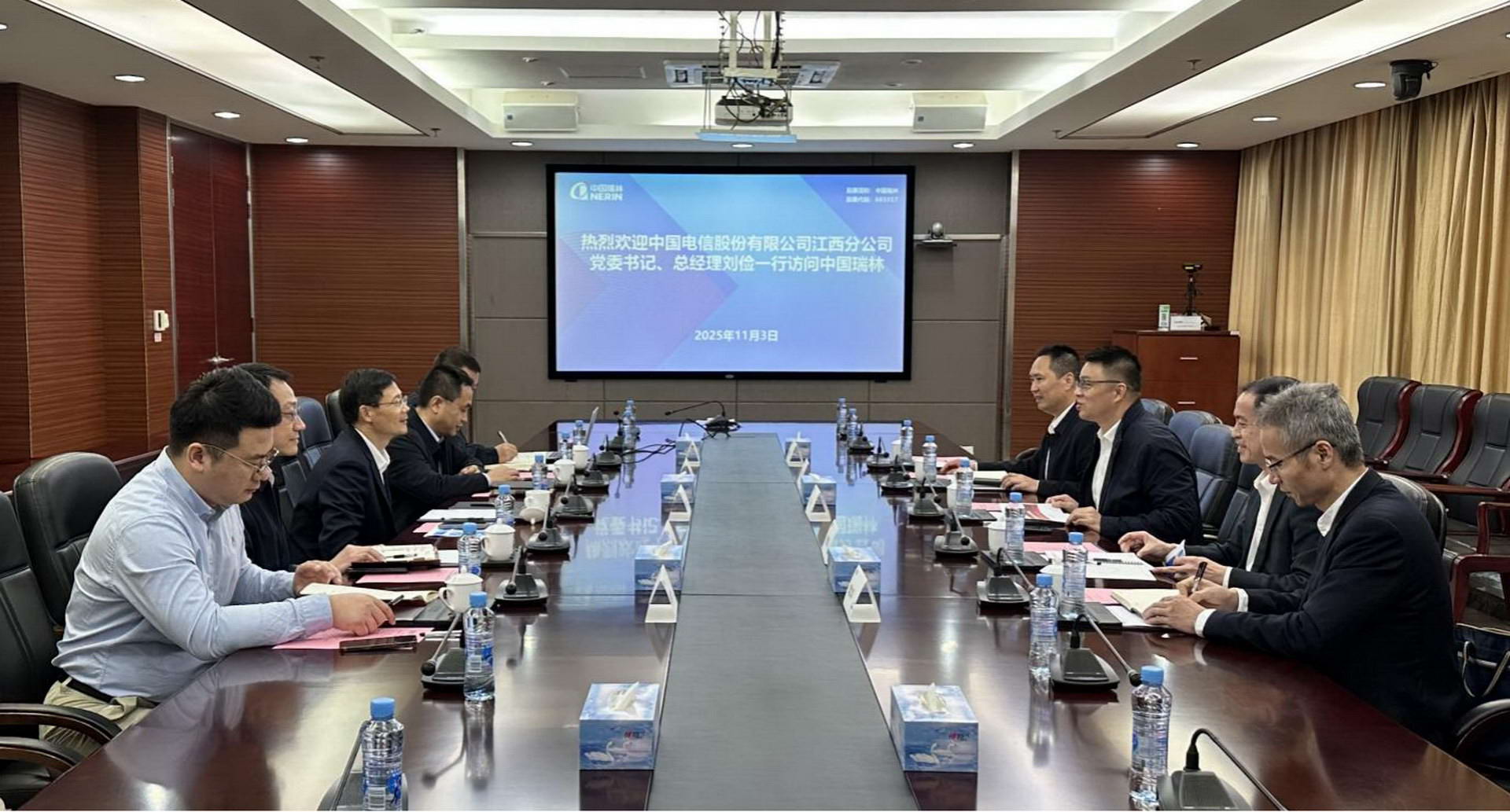 11月3日,中國(guó)電信股份有限公司江西分公司(以下簡(jiǎn)稱“江西電信”)黨委書記、總經(jīng)理劉儉一行到訪中國(guó)瑞林。中國(guó)瑞林黨委書記、董事長(zhǎng)、總經(jīng)理吳潤(rùn)華熱情接待了來(lái)訪嘉賓,雙方圍繞數(shù)字化轉(zhuǎn)型的產(chǎn)業(yè)方向與合作領(lǐng)域,開展了友好深入的座談交流。