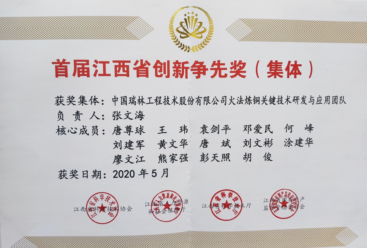 Recently, Jiangxi Association for Science and Technology, Jiangxi Province Human Resources and Social Security Department, Science and Technology Department of Jiangxi Province, and State-owned Assets Supervision and Administration Commission of Jiangxi Province jointly issued the “Decision on Commending the Winners of the First Innovation Competition Prize in Jiangxi Province” (GKX Zi No. [2020] 69). China Nerin’s team in researching, developing and applying key pyrometallurgy technologies won the first innovation competition prize (collective) in Jiangxi province.